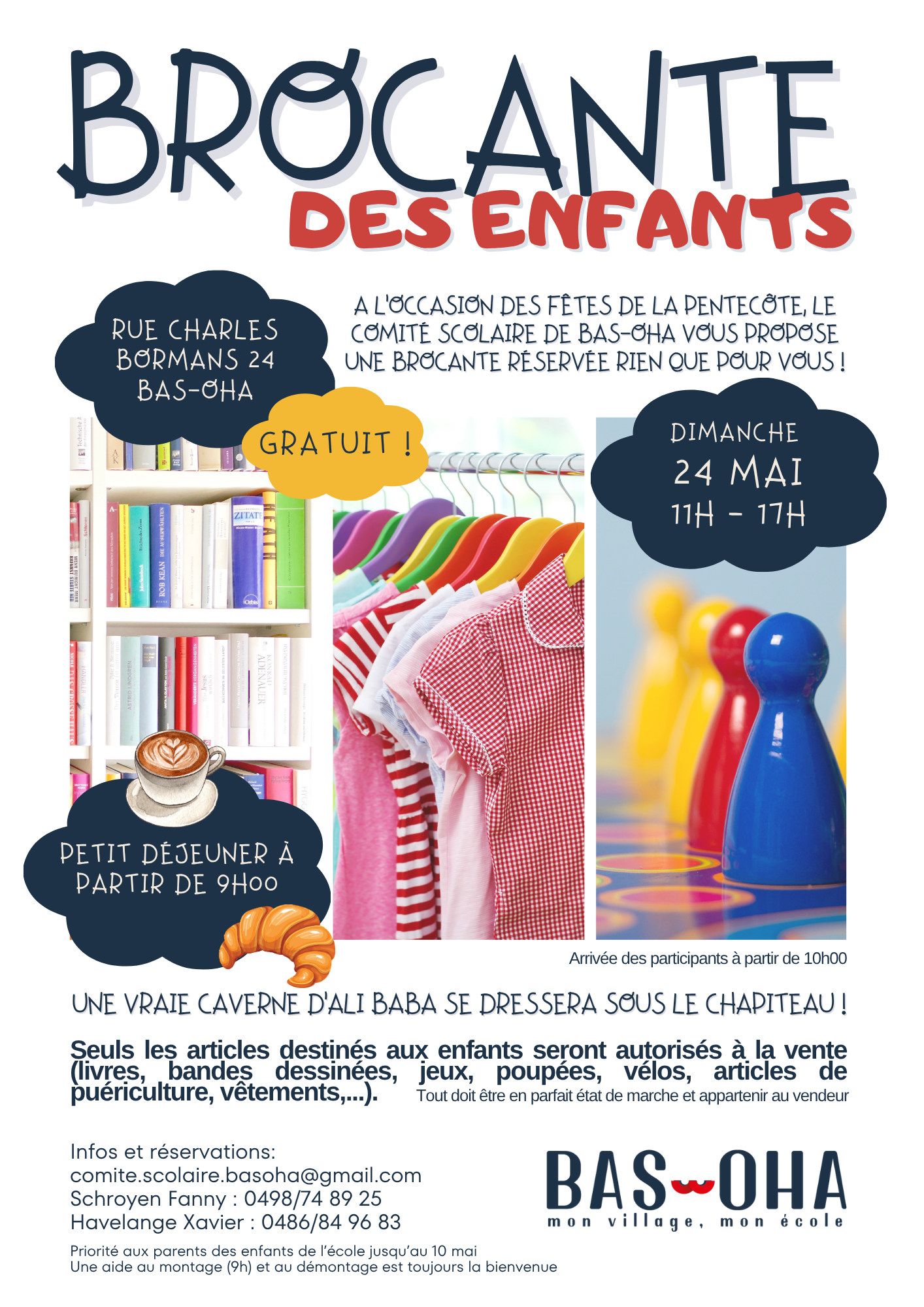 A l’occasion des fêtes de la Pentecôte, le Comité Scolaire de Bas-Oha vous propose une brocante réservée rien que pour vous !