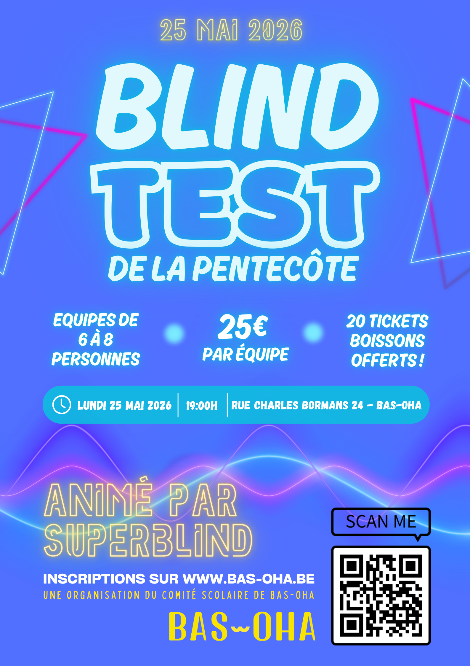 Après le grand succès de l’édition 2025, le comité scolaire vous annonce le retour de son grand Blind Test animé par SUPERBLIND !